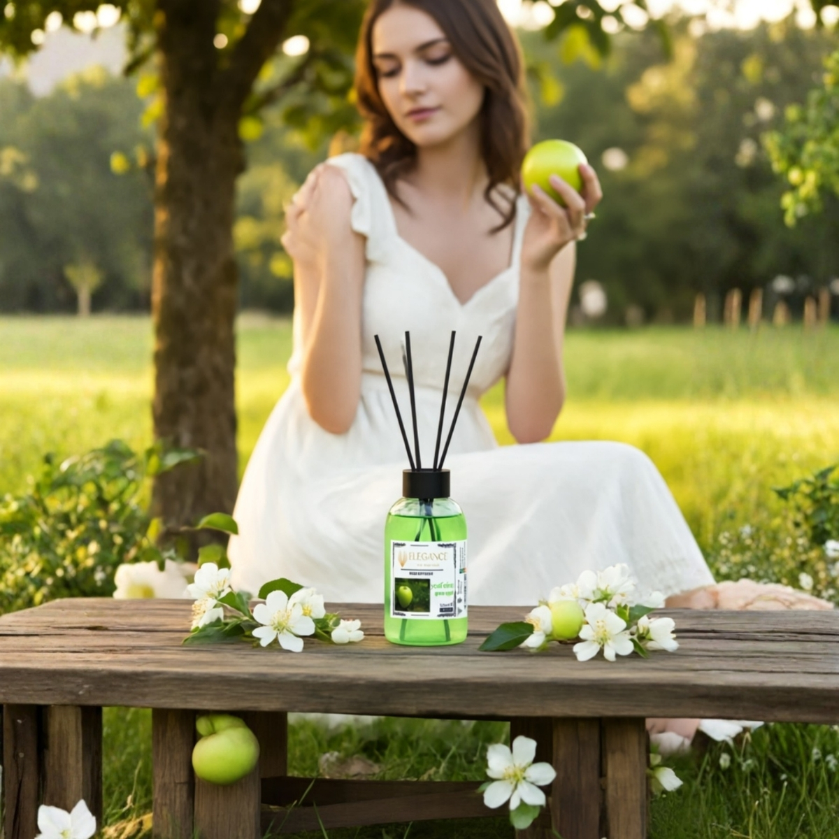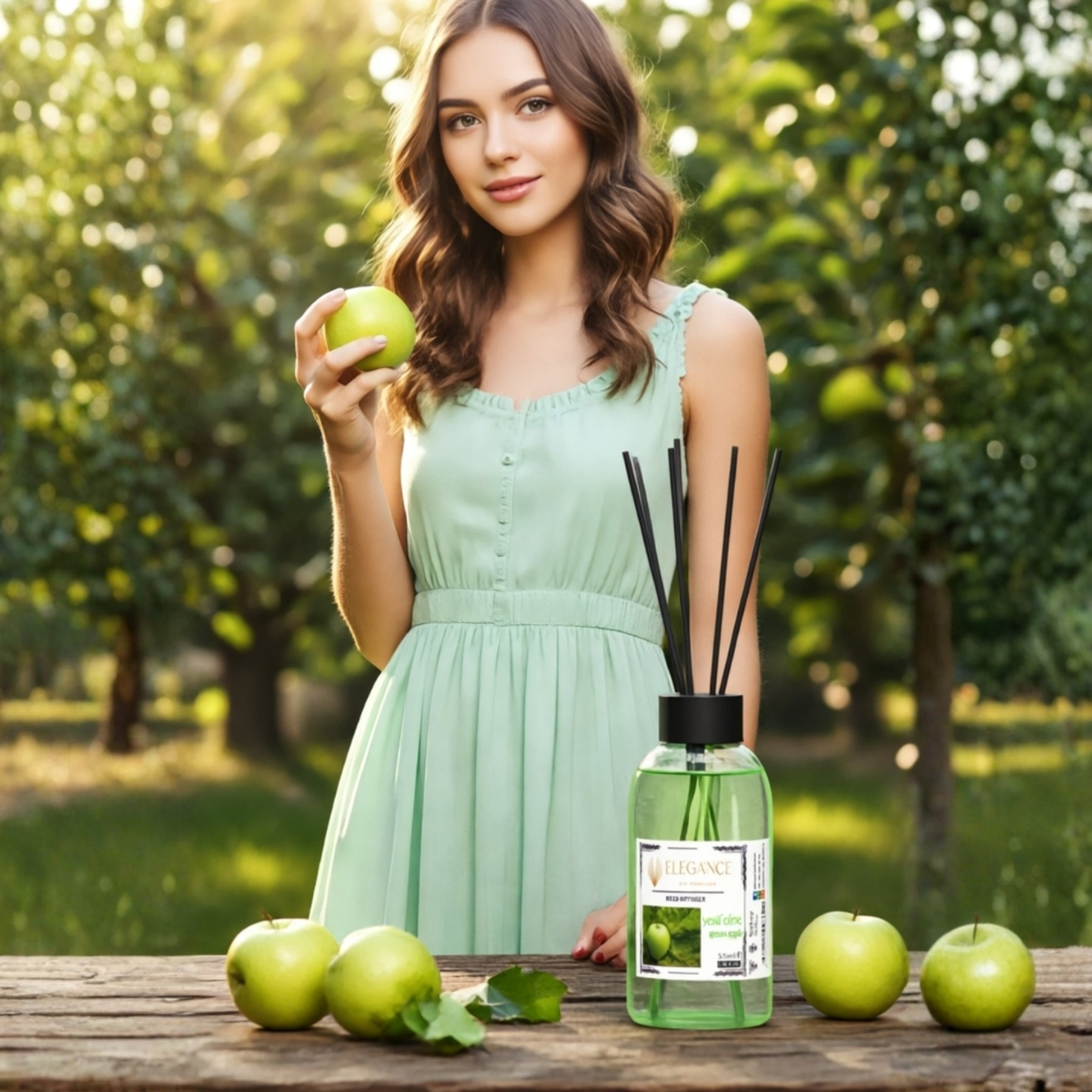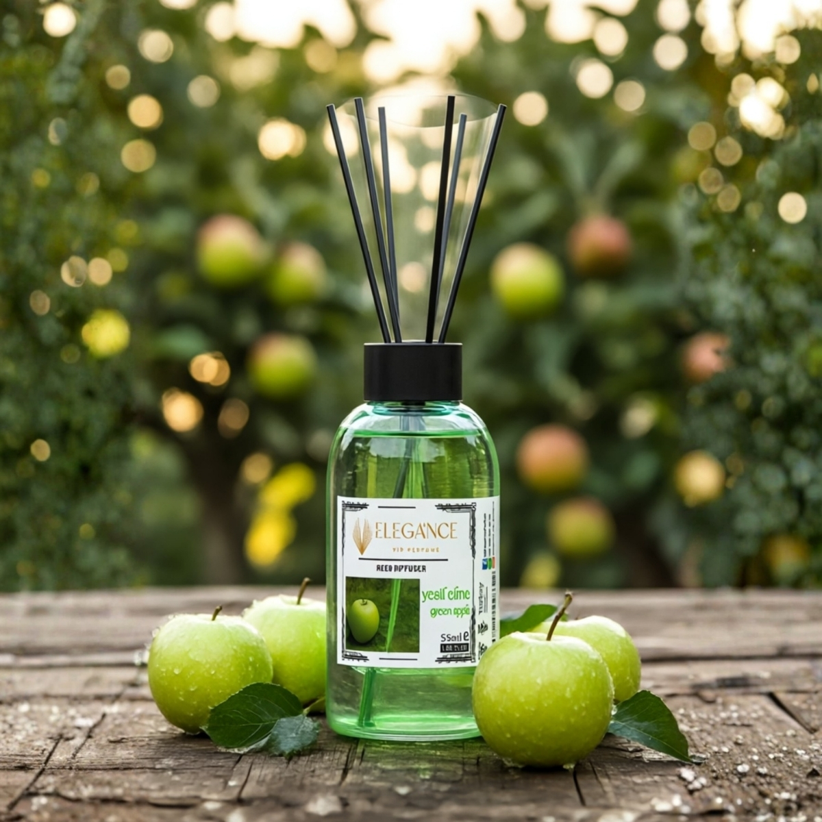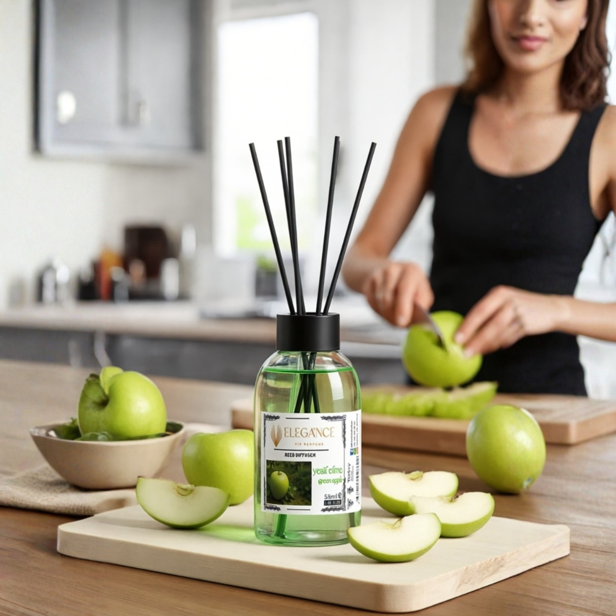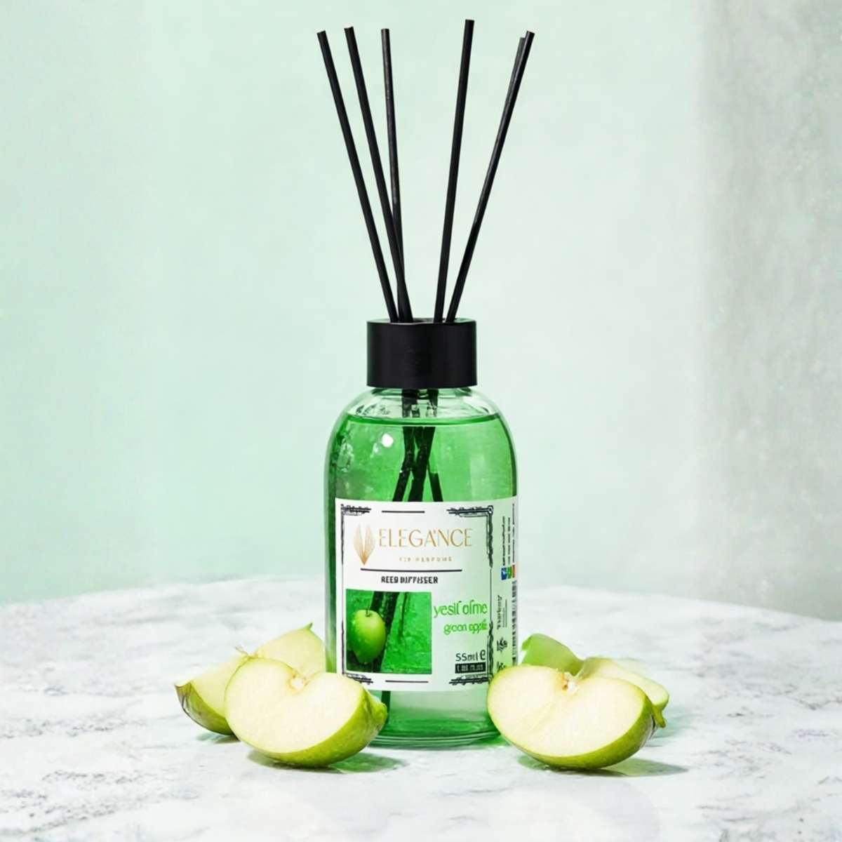 - Yeşil elma reed diffuser (ortam kokusu) ferah, yumuşak ve dengeli bir koku barındırdığı için sakinleşme sağlar elegance yeşil elma kokusu sayesinde evinizde ya da ofisinizde özel bir kokuya sahip olabilirsiniz. Yeşil elmanın canlandırıcı kokusunu dengeli bir şekilde taşıyan bu özel ortam kokusu sayesinde mekandaki negatif enerjinin giderilmesine etki ederek, kendinizi daha iyi hissetmenize yardım edecektir.